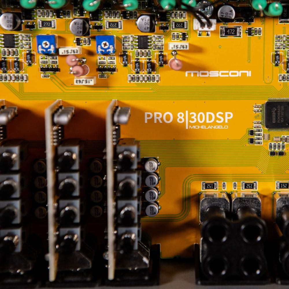 آمپلیفایر Mosconi PRO 8|30 DSP یک شاهکار تکنولوژیک و پرچمدار سری PRO است که برای پاسخگویی به نیازهای پیچیدهترین سیستمهای صوتی خودرو طراحی شده است. این آمپ یک راهکار “همه کاره” در سطح High-End است که قدرت خام یک آمپلیفایر کلاس AB را با هوش یک پردازنده دیجیتال پیشرفته (DSP) ترکیب میکند. فلسفه ساخت این محصول، ارائه یک پلتفرم واحد برای راهاندازی سیستمهای اکتیو چندراهه (Multi-way Active) است، بدون اینکه کاربر مجبور به قربانی کردن فضای صندوق عقب با نصب چندین آمپلیفایر جداگانه باشد. این محصول با دارا بودن 8 کانال تقویت کننده و 12 کانال پردازشگر، مرزهای میان قدرت و کیفیت را از میان برداشته است.