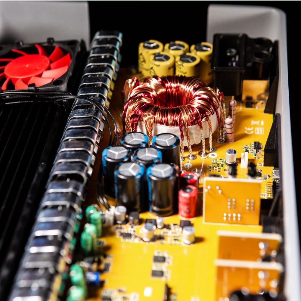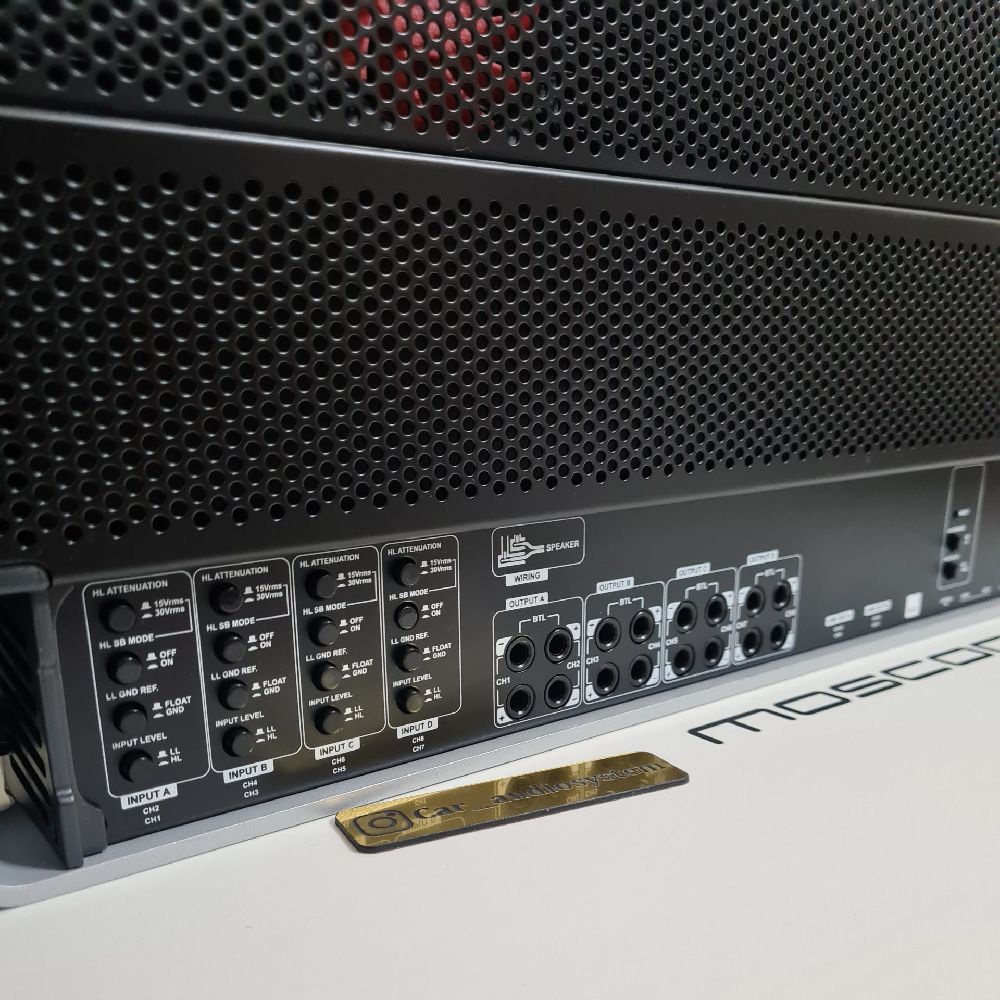 - یکی از درخشانترین ویژگیهای مهندسی این دستگاه، توزیع هوشمندانه توان است. به جای تقسیم مساوی قدرت، این آمپلیفایر دارای دو بخش مجزا است: 4 کانال با توان 90 وات برای درایورهای ظریف مانند توییتر و میدرنج، و 4 کانال با توان بسیار بالا معادل 170 وات برای درایورهای قدرتمند مانند میدباس و ووفر. این معماری باعث میشود انرژی منبع تغذیه دقیقا در جایی که نیاز است مصرف شود و راندمان صوتی به حداکثر برسد.